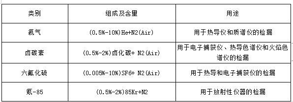 檢漏(報警)混合氣:用于特殊檢漏的混合氣,其品種規(guī)格多。常見類別有氦氣、鹵碳素、六氟化硫和氪-85等。